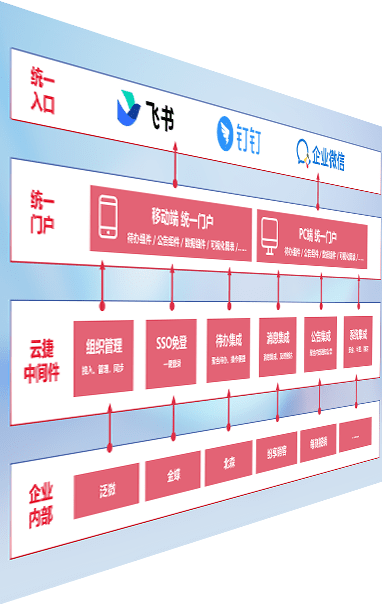 对协作平台提供支持服务,,,支持企业应用与协作平台对接,,,,包含组织同步、、、消息集成、、待办集成等。。支持目前主流的协作平台:钉钉、、、、企微和飞书。。。。
